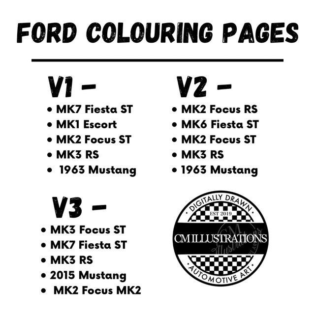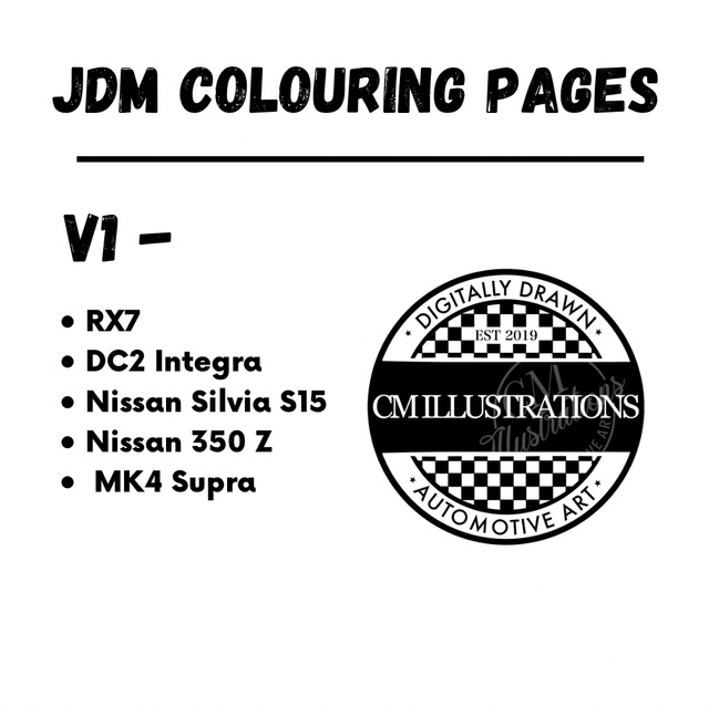 Pack of Five colouring pages, designed and drawn by CM Illustrations. These make a great activity for any car mad artists!