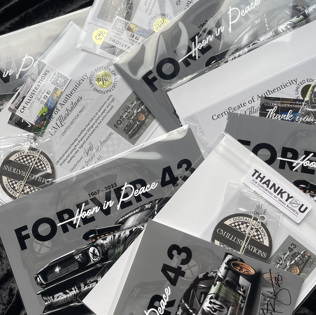 These prints were made as a tribute piece, and there is 43 in total. Each print is numbered and comes with a certificate of authenticity along with a free air freshener as a thank you.
